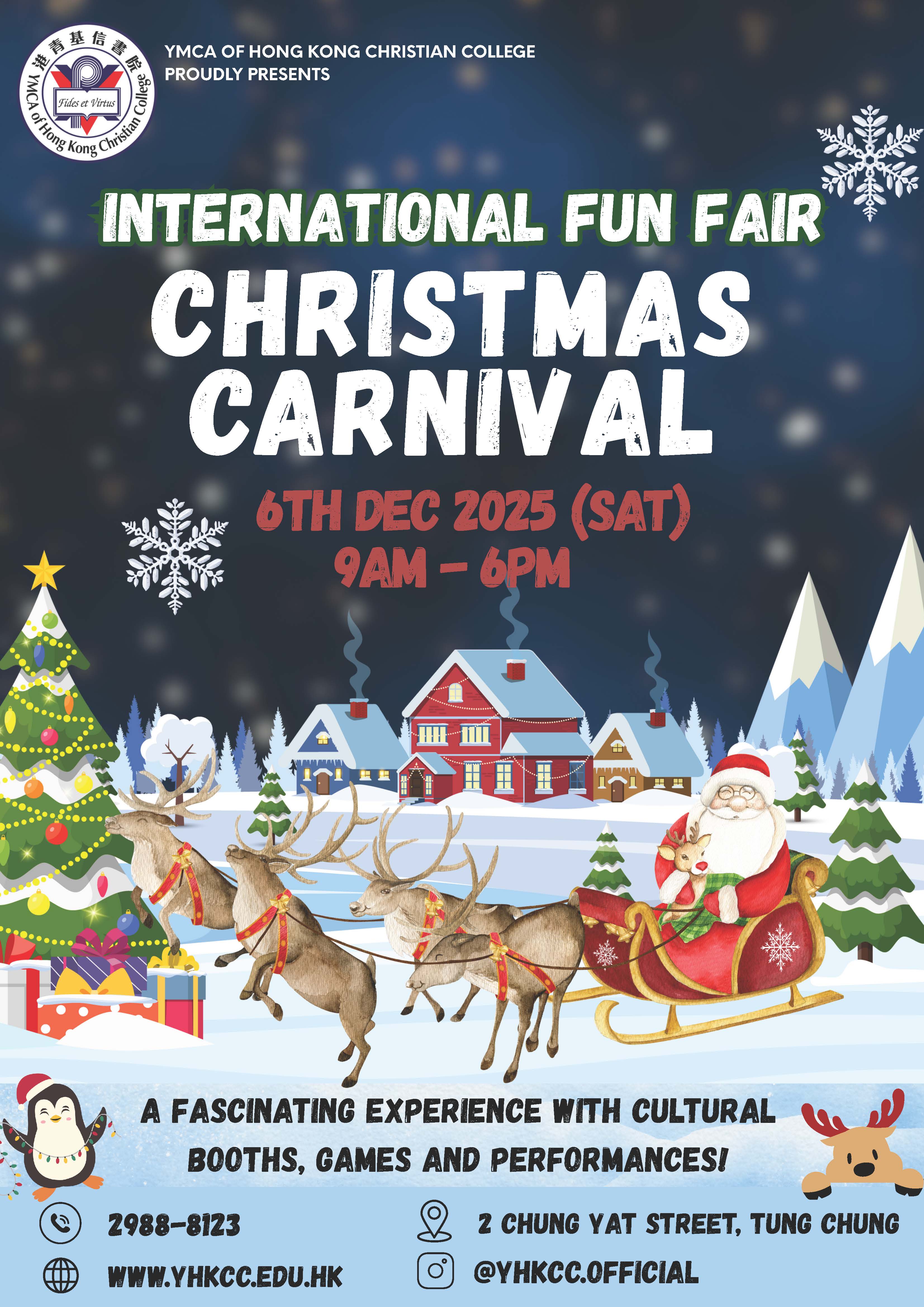 | Remarks | < The International Fun Fair is a whole-day event to celebrate Christmas and is dedicated to showcasing cultural uniqueness, promoting sustainable practices, and fostering a love for reading within the community. Attendees can enjoy an International Food Plaza, a Christmas Market, Cultural Game Booths, an Art Gallery, a Primary School Football Tournament, performances by F.1 - F.2 students, and much more! We warmly invite you to be a part of the celebration! |