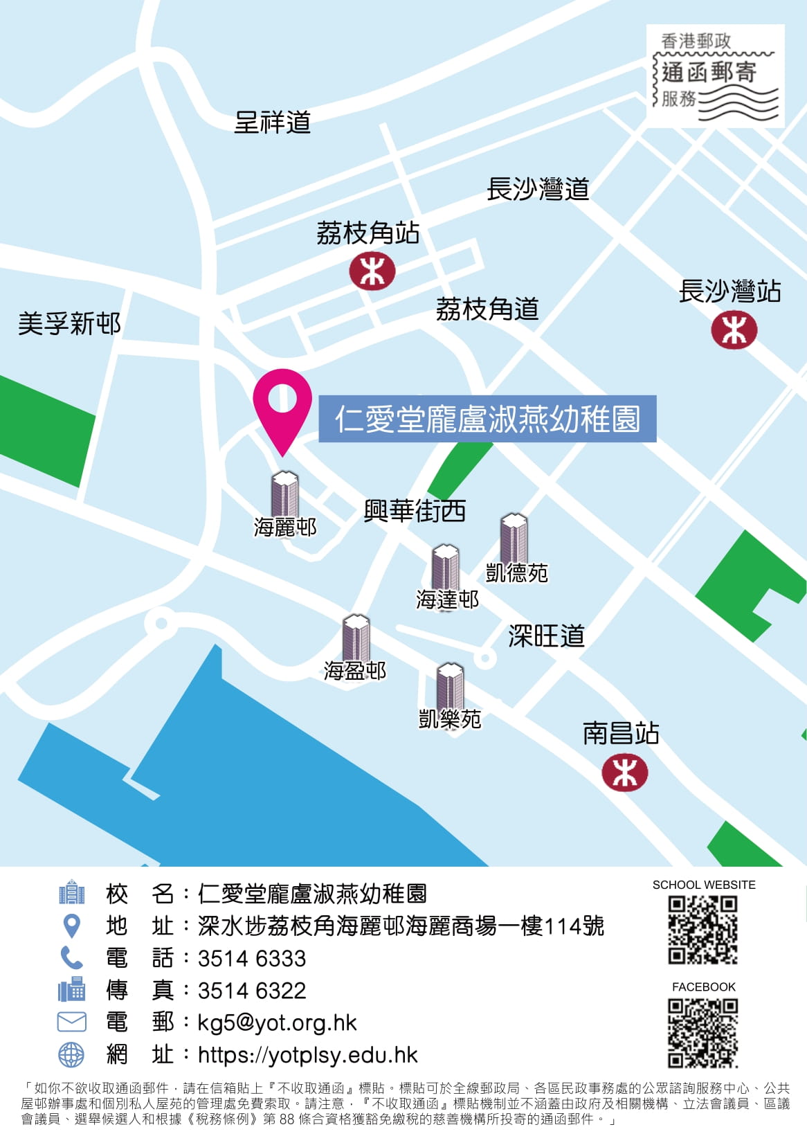 | 地點 | 深水埗荔枝角海麗邨海麗商場一樓114號 |