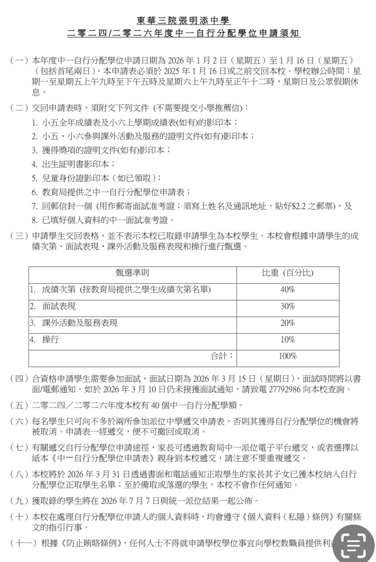 | 开放日名称 | 中一入學資訊日 |