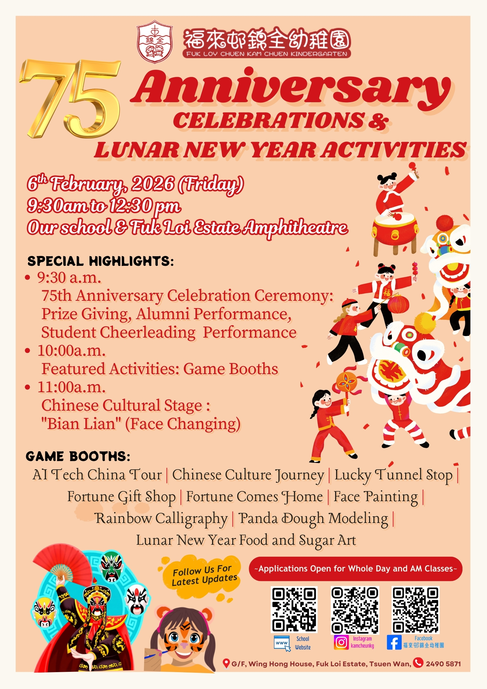 | Name of Open Day | 75 Anniversary Celebrations & Lunar New Year Activities |