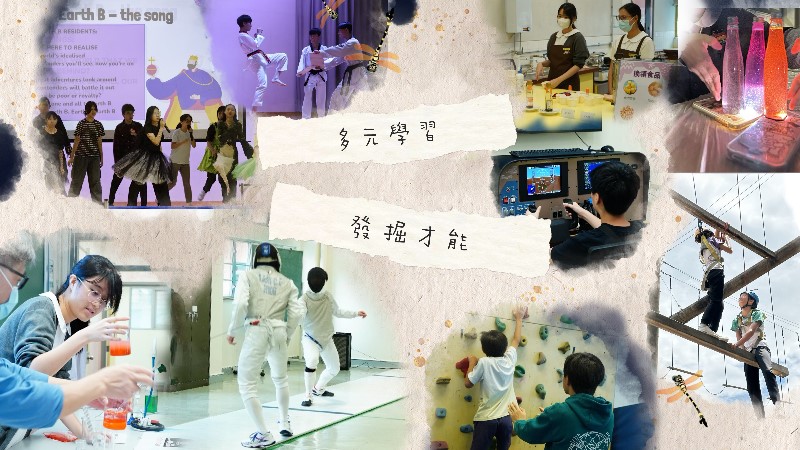 | 全方位學習(包括通過各學習領域、課外活動、聯課活動等,提供五種基要學習經歷) | : | 設有41個學會,活動多元化,包括公益少年團、少年警訊、醫療輔助隊少年團、升旗隊、民安隊少年團、扶少團、中文學會、英文學會、數學學會、科學學會、普通話學會、閱讀學會、辯論學會、田徑學會、籃球學會、羽毛球學會、閃避球學會、游泳學會、運動攀登學會、乒乓球學會、排球學會、花式跳繩學會、劍擊學會、跆拳道學會、探藝會、音樂學會、合唱團、獨唱組、中樂團、管弦樂團、舞蹈學會、棋藝學會、家政學會、創科學會、基督徒團契、攝影學會、戲劇學會、校園農圃、無人機學會、模擬飛行學會、舞台管理等。 |