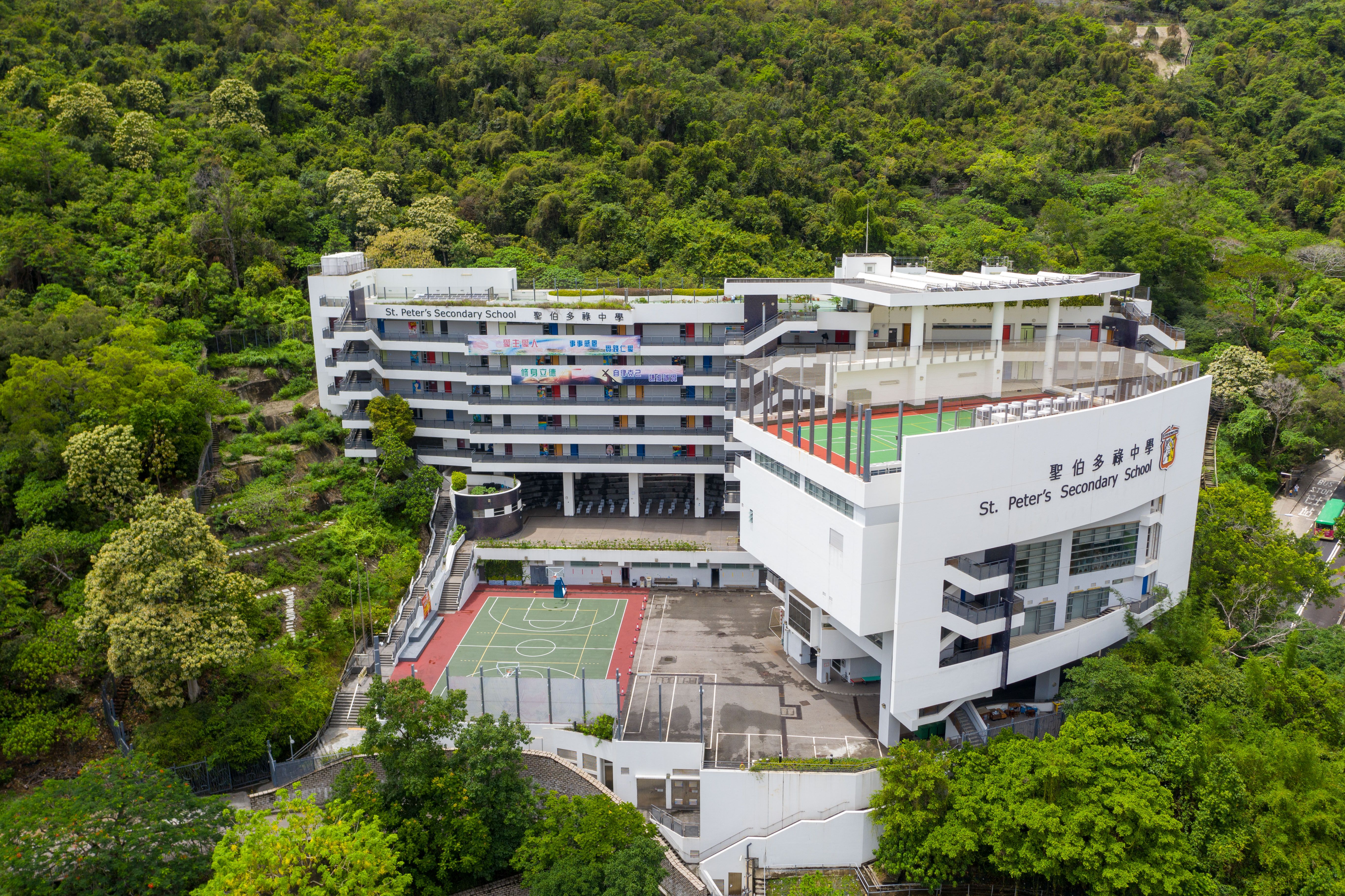 | 學校設施 | : | 本校於二零一二學年遷進香港仔水塘道全新校舍,設標準課室三十間,並有多個特別室,包括實驗室五間,籃球場兩個,禮堂、演講廳、宗教室、STEM創新實驗室、多媒體學習室、資訊科技教材預備室、語言室、電腦室、地理室、多功能活動室及學生活動中心等各一個間。全校所有教室及禮堂均設有空氣調節系統、多媒體投影系統,而無線網絡亦已覆蓋全校每個地方,有利推動流動電子學習。校園依山而建,空氣清新,營造良好的學習環境。 |
